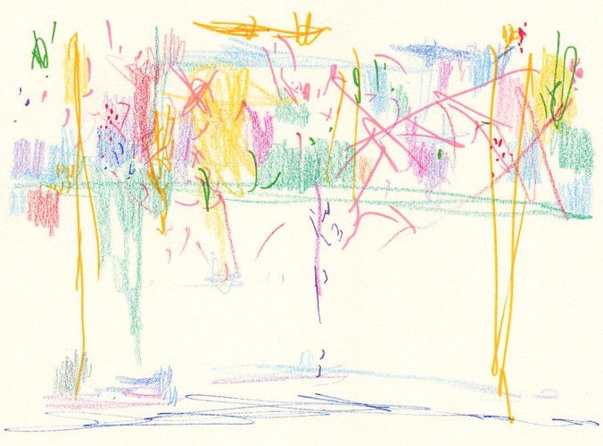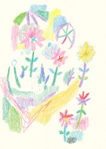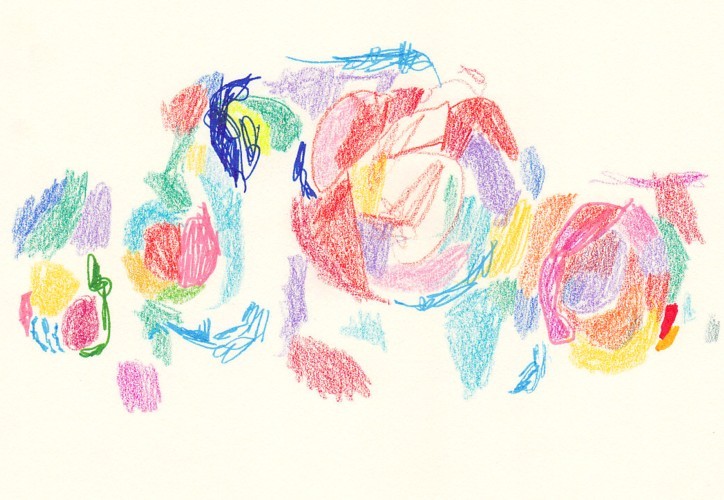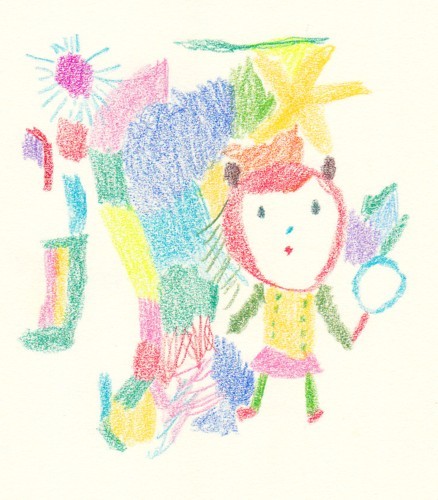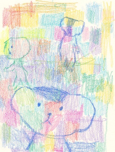 例えば、クレヨンでカラフルに塗った後、表面を削った