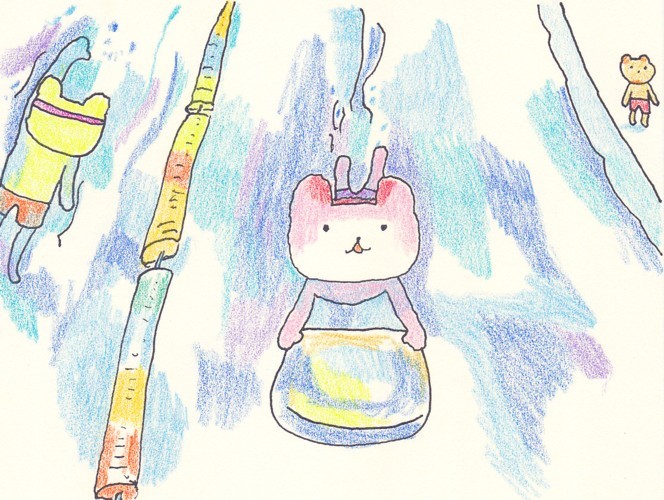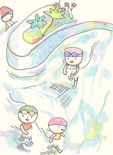 Tue.10.06.2015 氷と水 S10号 昨年に続いて、今年も製氷皿の氷の絵を描きました。 今年は水につかっているところです。 暑い時期に描き始めても、完成するのはだいぶ涼しくなった頃に なってしまいます。 この絵と同じ、真四角の10号キャンバスに石の絵も描いています。 両方とも、下塗りが抽象画のようなところが特徴です。