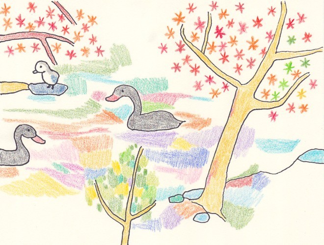 絵を作った上に、パソコンで文字をのせました。