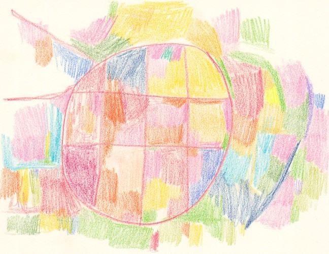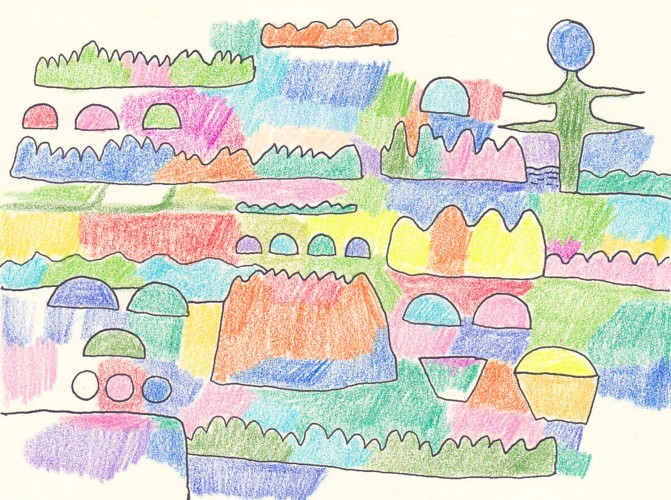 画材はアクリル絵の具とクレパスです。