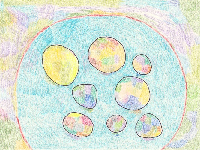 Fri.04.15.2016 春夏秋冬 パステルで1枚の紙に春夏秋冬を描くプログラムに 参加しました。 他の方は縦に4分割して、四季の風景を描いた上に、 筆で言葉を書くスタイルでしたが、 私は十字に4分割にして、 抽象的に四季を表現することに挑戦しました。 左上が春、左下が夏、右上が秋、右下が冬です。 それぞれに、言葉をつけてみました。難しいです。 春 花と花と草と風 夏 水ぎわの光る砂のうえ蟻があるく 秋 空と地の遠いかたちを平らにする 冬 塊のうちがわ薄明また夢をみる