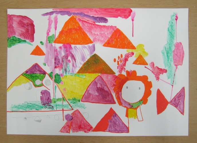 絵の具で描いたら、紙が少し丸まってしまいます。