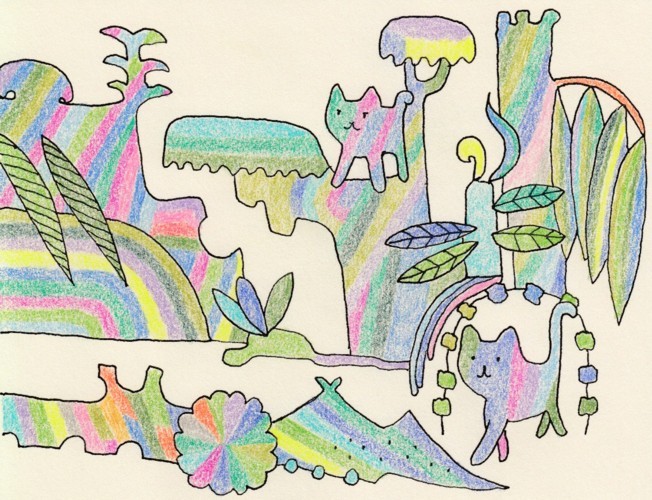 Sun.05.26.2019 草花の絵 アトリエ・ブルートの近くで草花を採ってきて、 瓶に生けて、色鉛筆で絵を描きました。 モチーフは、細かい白い花をつける植物が中心ですが、 たくさんの色を使って表現しました。