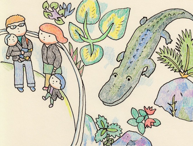 ワニと黒フリース家族