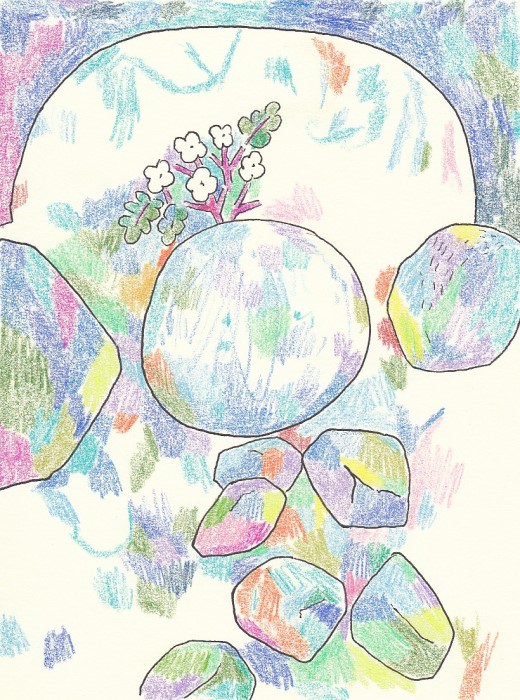石と白い花