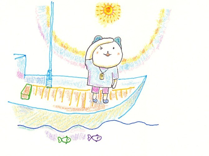 船の絵は、太陽を中心にして、右側に広く余白を取るように変えました。