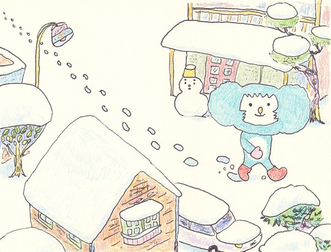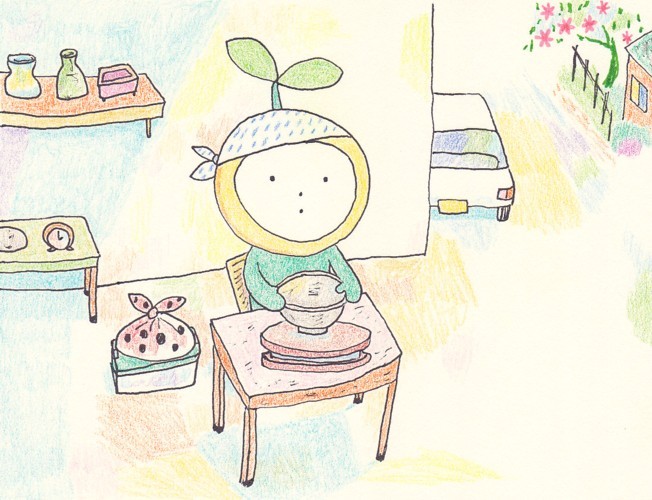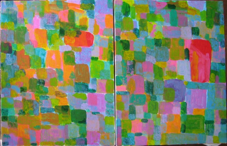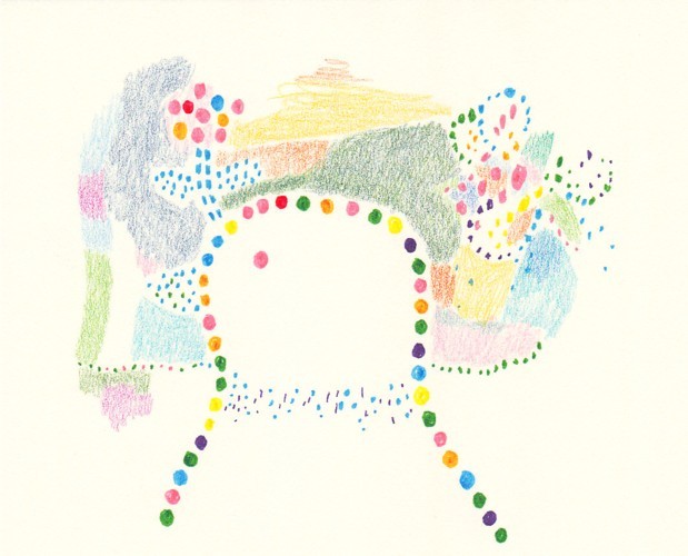 点描の絵は、近くで見るといろいろな色が使われていて、