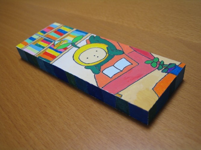 細い筆を使って、きっちりと絵の具で塗るのは