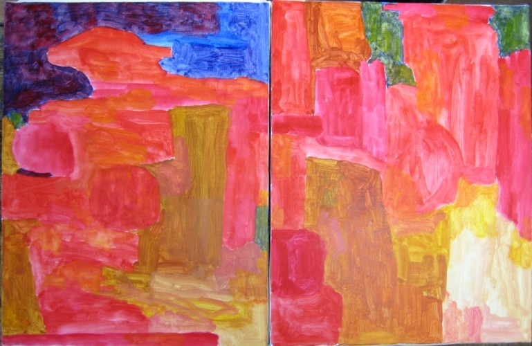 大きい油彩画と、中くらいの油彩画を同時進行で描いています。