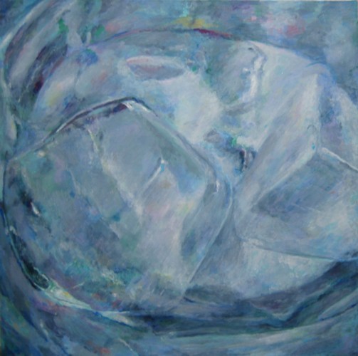 Tue.10.06.2015 氷と水 S10号 昨年に続いて、今年も製氷皿の氷の絵を描きました。 今年は水につかっているところです。 暑い時期に描き始めても、完成するのはだいぶ涼しくなった頃に なってしまいます。 この絵と同じ、真四角の10号キャンバスに石の絵も描いています。 両方とも、下塗りが抽象画のようなところが特徴です。