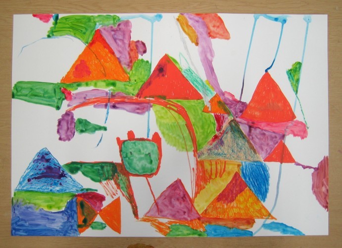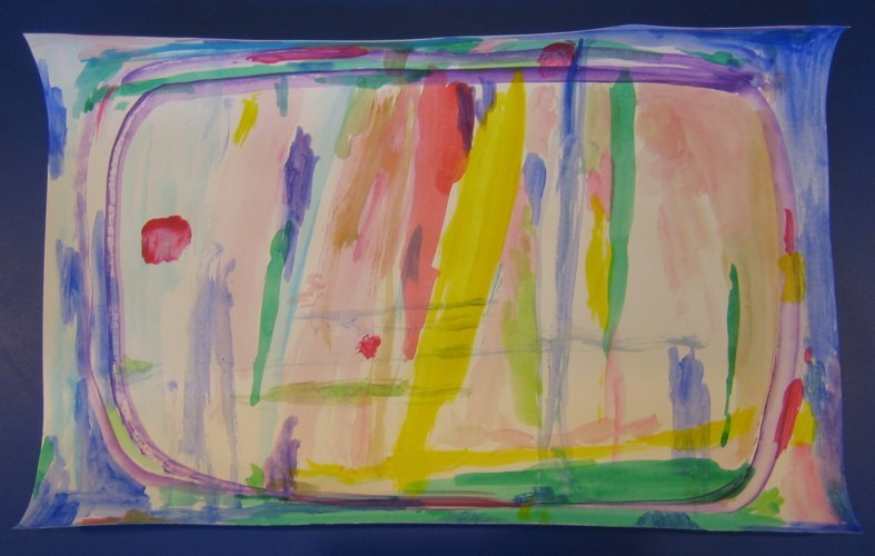 絵の具で描いたら、紙が少し丸まってしまいます。
