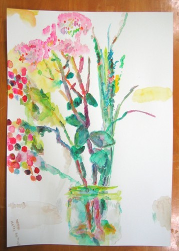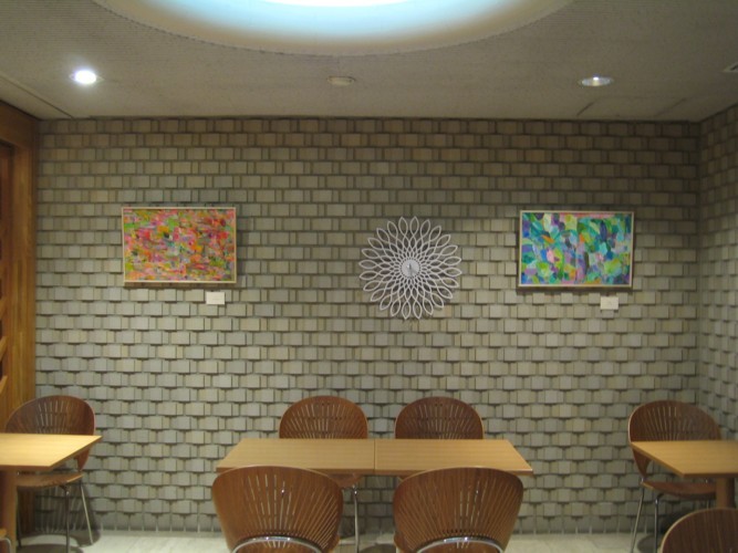 Sat.10.29.2016 喫茶店の展示が変わりました 一宮市博物館の喫茶店での展示は3回目です。 アートクラブで描いた油絵の10作目と11作目、2点を展示しました。 今回は、2枚のキャンバスを裏で金具でつなぐ作業や、 角材を買って絵の周りに打ち付ける作業なども自分で行いました。 なかなか手間のかかることだと思いました。 展示を新しくして、お店の雰囲気がまた違った感じになって良かったです。 「羽」 「植物」