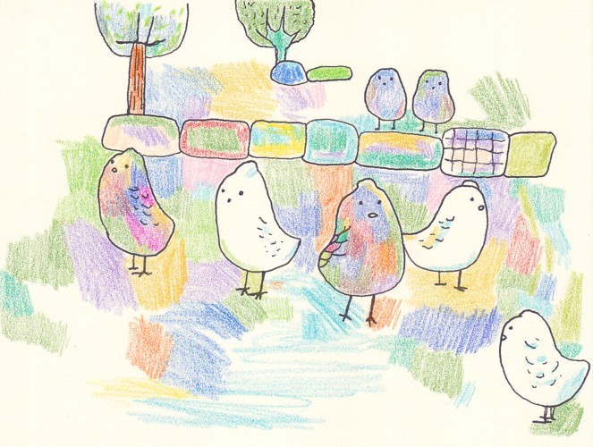 Thu.01.12.2017 今年は酉年なので、 昨年描いた絵日記の中から 鳥の絵を何枚か選んでみました。 鳥というのは、わりと どこにでもいますけど、 とても小さい鳥と 大きい鳥は全然違いますね。 昨年の夏はプール通いをして いたので、泳ぐペンギンの絵に 臨場感が出たと思います。 すずめ チャボ ペンギン 泳ぎます
