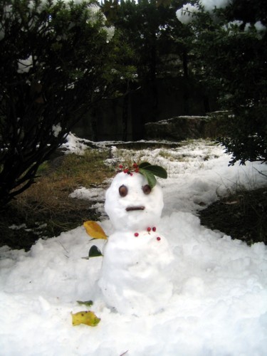 Mon.01.16.2017 雪が降ったから 雪だるまはん 雪が降って積もりました。 雪が積もることが年に1、2日あるかどうか、 という地域なので、寒い!と思いつつも、 白くなった街を見に行きます。 歩いていたらまた雪が降ってきました。