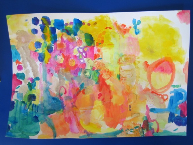 Fri.01.27.2017 静物画 バターナッツ南瓜の一日 アトリエ・ブルートで静物画を描きました。 白い台の上に、めずらしい、ひょうたんのような かぼちゃが置いてありました。 私はかぼちゃの周りにもいろいろなものを描きました。 この日は初めてローラー型の画材を使いました。 講師の方が使い方を見せてくださいましたが、 あっという間に絵の具が複雑な模様になり、 目を丸くしました。 ローラーの画材を使ったり、画用紙に水をかけたり して描きました。 残った時間には、服に絵を描く続きをしました。