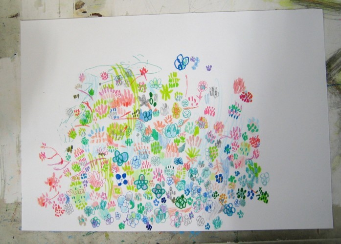 Sat.02.18.2017 ルーペで観察 植物の集まり アトリエ・ブルートの地図を描き、 ブルート内をルーペを持って探検する日でした。 ブルートの入り口にある、植木鉢の細かな植物をルーペで 観察しました。 私は普段から視界が狭いので、あまり変わらないのでは、 と思っていましたが、ルーペを通してみると拡大されて、 全然違う雰囲気になりました。 でもルーペで見ながら絵を描くことはできません。 目が疲れるからです。 ルーペで見たときの迫力のある感じを出したいと思いました。