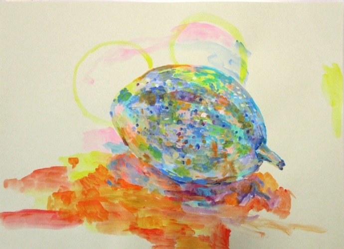 アクリル絵の具で描きました。1枚目はカボチャをよく観察して描き、