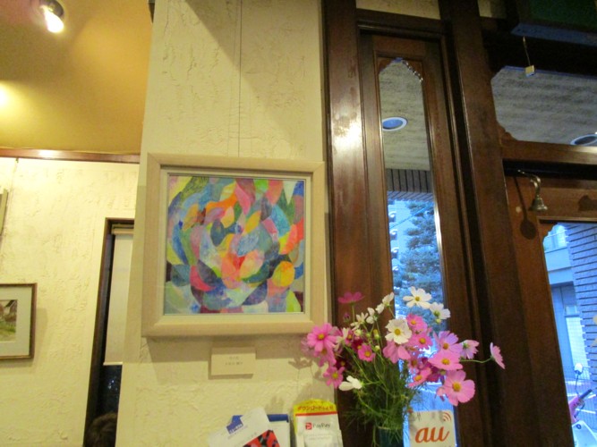 一宮駅西側にある喫茶店、茶房 万葉人に展示させていただいている絵を