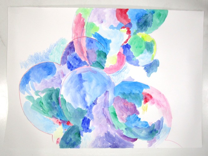 キャンバスの絵は、今回はなぜか絵の具に多めに水を混ぜて描きました。