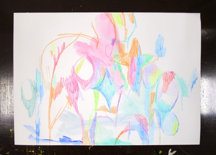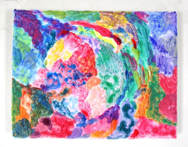 アトリエ・ブルートで、小さいキャンバスと、画用紙にアクリル画を描いてきました。