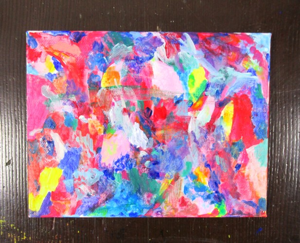 私の小さいキャンバスに描いた抽象画も1点展示していただきます。