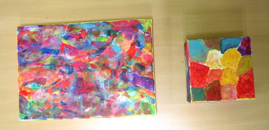 アクリル画を描きました。2枚のキャンバスは、大きさと厚みが違うので、