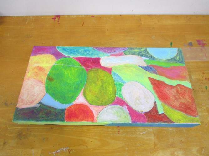 横長の、厚みのあるキャンバスで、側面にも色が塗ってあります。