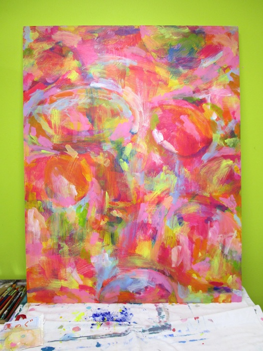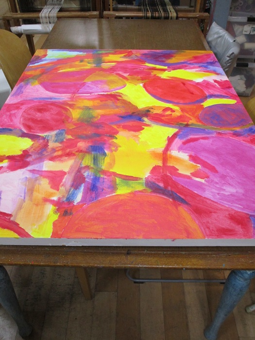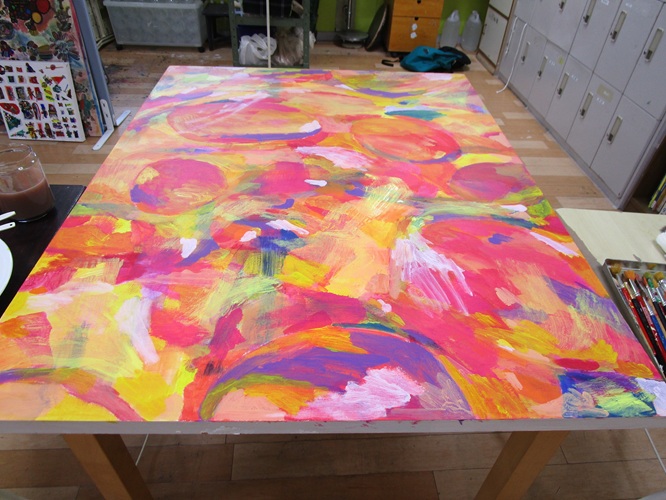 アトリエ・ブルートで1月から描いていたF50号のパネルのアクリル画が
