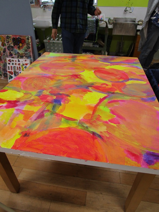 最終日には立て掛けて描きました。前半は小さい絵と同時進行だったので