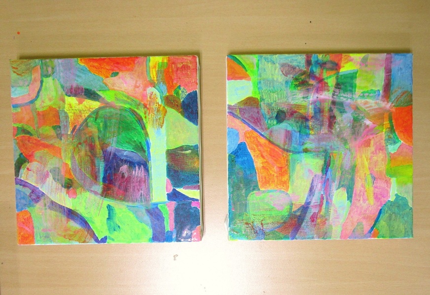 アトリエ・ブルートで描いていた、S3号2枚のアクリル画が完成しました。