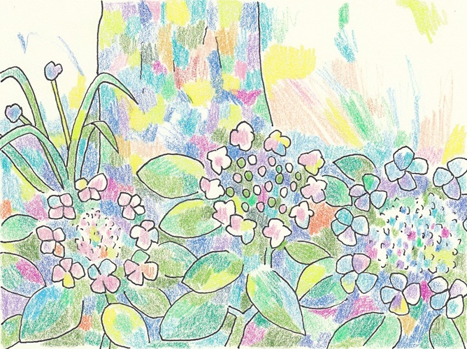 あじさいと木もれ日